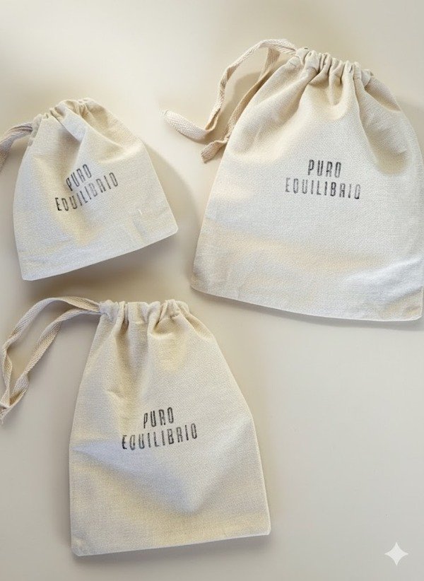 Bolsas de lienzo natural para presentar velas o difusores. Simples, elegantes y reutilizables. Un detalle sutil que realza cada producto.