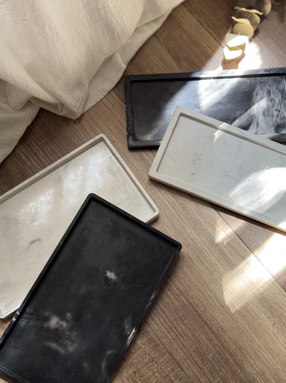 Bandeja cementicia Simil Mármol (opción Blanca o Negra) de 26.5 x 12cm